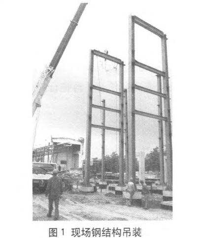 吊車選擇:現(xiàn)場(chǎng)鋼結(jié)構(gòu)吊裝時(shí),成片鋼結(jié)構(gòu)常采用一機(jī)主吊、一機(jī)抬吊法進(jìn)行吊裝,立柱常采用單機(jī)旋轉(zhuǎn)法進(jìn)行吊裝。由于成片鋼結(jié)構(gòu)整體重量重于10t,高度在20m以上,吊點(diǎn)一般設(shè)置在頂部橫梁處,雙吊點(diǎn)吊裝。所以根據(jù)情況考慮負(fù)載、地面脫鉤,在吊裝過程中選用大噸位、長(zhǎng)臂吊車。且吊索高度應(yīng)與立柱或者鋼結(jié)構(gòu)高度一致,吊車吊裝高度至少為鋼結(jié)構(gòu)高度的一倍。