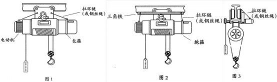 捆綁電動機(jī)、減速箱的第二種方法:在小車滑輪的夾板上焊牢角鐵,長度根據(jù)電動葫蘆的大小確定,角鐵規(guī)格的大小則要根據(jù)電動葫蘆的重量確定,要確保足夠的強(qiáng)度。捆綁電動機(jī)和減速箱的方法同上,另一端固定在角鐵的兩端(見圖2)。