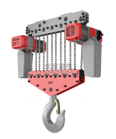 30噸DLER環(huán)鏈電動葫蘆穿軸式重物吊上吊下都有極限開關(guān)裝置,使電機自動停止,以防止鏈條超出,確保安全。